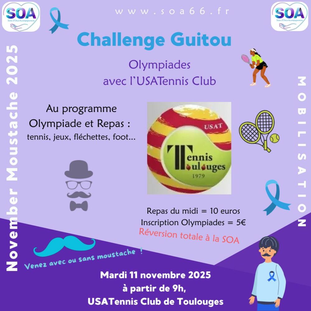 Dans le cadre de notre engagement pour la santé masculine, un événement spécial en partenariat avec le club de tennis de Toulouges est organisé. Cet événement a pour objectif de sensibiliser la communauté au cancer masculin, tout en encourageant la solidarité et la prévention.