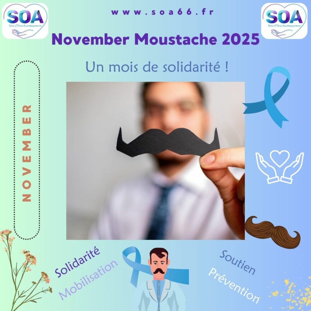 Chaque année, le mois de novembre se pare de bleu et de moustaches pour une cause essentielle : la sensibilisation au cancer des testicules (et autres). 🎗️ November Moustache, c’est un moment de solidarité et de mobilisation pour encourager le dépistage précoce et soutenir les personnes touchées par cette maladie. Pour la SOA , c’est une cause qui nous tient à cœur 💖, car chaque geste compte pour faire avancer la recherche et sauver des vies. Ensemble, soyons plus forts face au cancer masculin ! 👊
